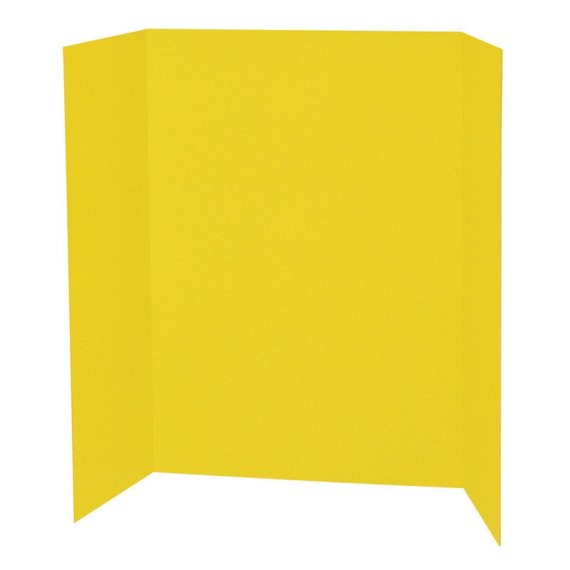 Presentation Boards are tri-fold, single wall corrugated display boards used for projects, booths, science fair presentations and all types of displays. Boards have a smooth, flat, uniform surface to accept many types of medium. Boards are Yellow on the front and Natural Kraft on the back. The full display size is 48" x 36" and the board folds to 24" x 36". Recyclable.