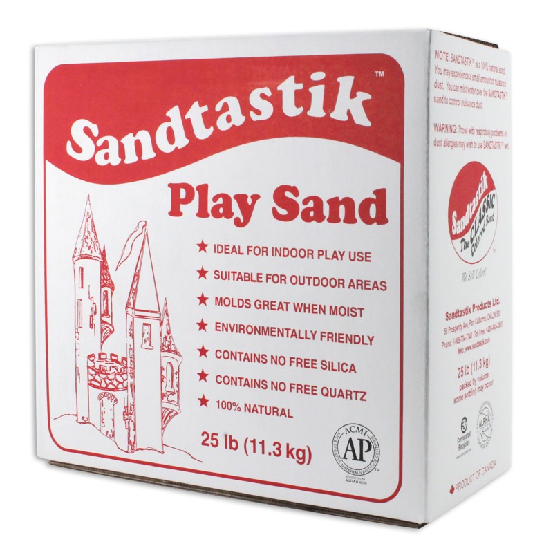 PLAY SAND WITH PEACE OF MINDChildren are naturally inspired by the simplicity of soft granular sand - a boundless medium. Watch as they will dig, pile, sift, compact and more. Sandtastik® Sparkling White Play Sand provides tactile and sensory stimulation necessary for the development of a child's imagination, hand-eye coordination, and fine motor skills such as shoulder stability, forearm rotation, wrist control, and hand strength. Sand play also encourages creativity, visualization and social interaction.