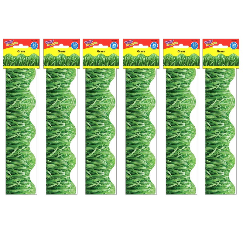 • Pre-cut, scalloped trim works with any bulletin board or display space. Attach with tape or staples.