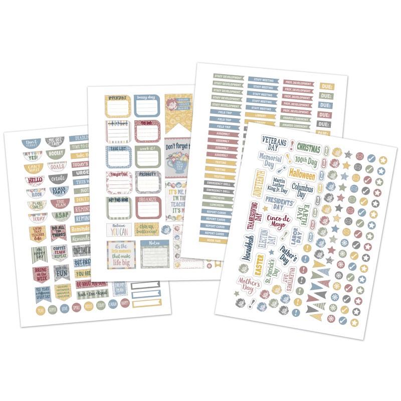 The ideal lesson planner for your highly organized teacher era! Keep up to 40 weeks of daily lesson plans in one convenient book. This book includes substitute teacher information, student roster sheets, and memorable quotations to use and discuss throughout the year. Twelve large monthly planning calendar spreads are also included for year-long lesson planning as well as for scheduling appointments, conferences, and events. The lesson planner also includes a variety of colorful stickers to use throughout the year. Whether you need to prioritize the day’s events, add weekly reminders, highlight something special, or simply provide a bit of inspiration, these cheerful stickers will keep your lessons beautifully organized. Measures 8-1/2" x 11".