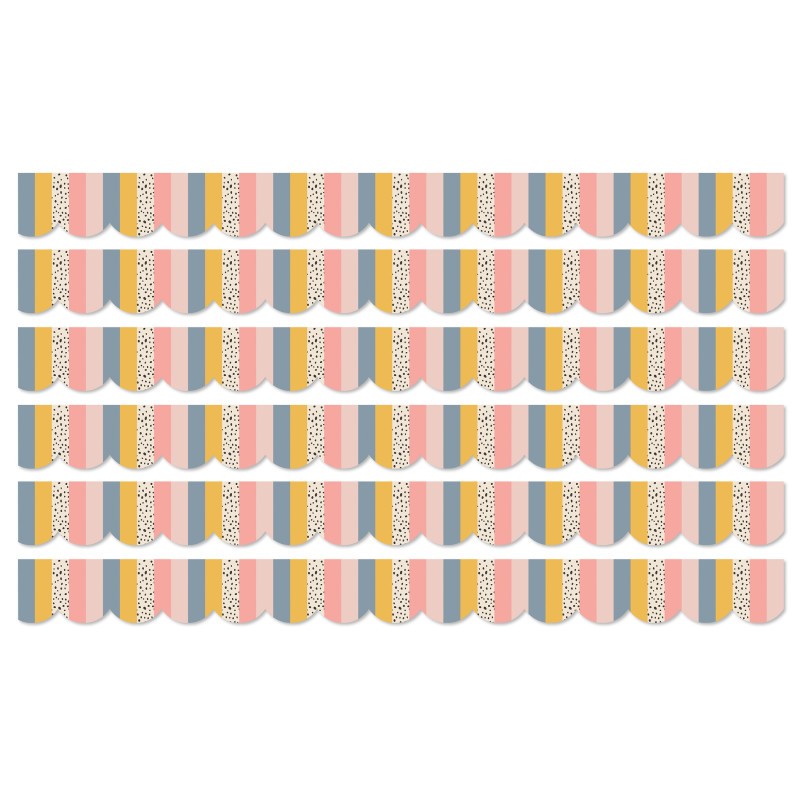 Add pops of colors and patterns to your learning space using Carson Dellosa We Belong Boho Rainbow Stripes Bulletin Board Borders—perfect for bulletin board, white board, cork board, and other classroom décor. Each bulletin board decorations set includes 13 strips of colorfully striped bulletin border with black and white leopard print designs throughout each strip of border. Each strip of bulletin board border measures 3' x 3" for a total of 39 feet to decorate doors and wall displays, cubbies, chalkboards, and other boho classroom decor needs. Rainbow décor is a great addition to year-round party, black board, and bulletin board decorations, office décor, locker, and desk décor, as well as spring and summer bulletin board decorations. Sold as 6 packs for a total of 78 strips (234 feet).