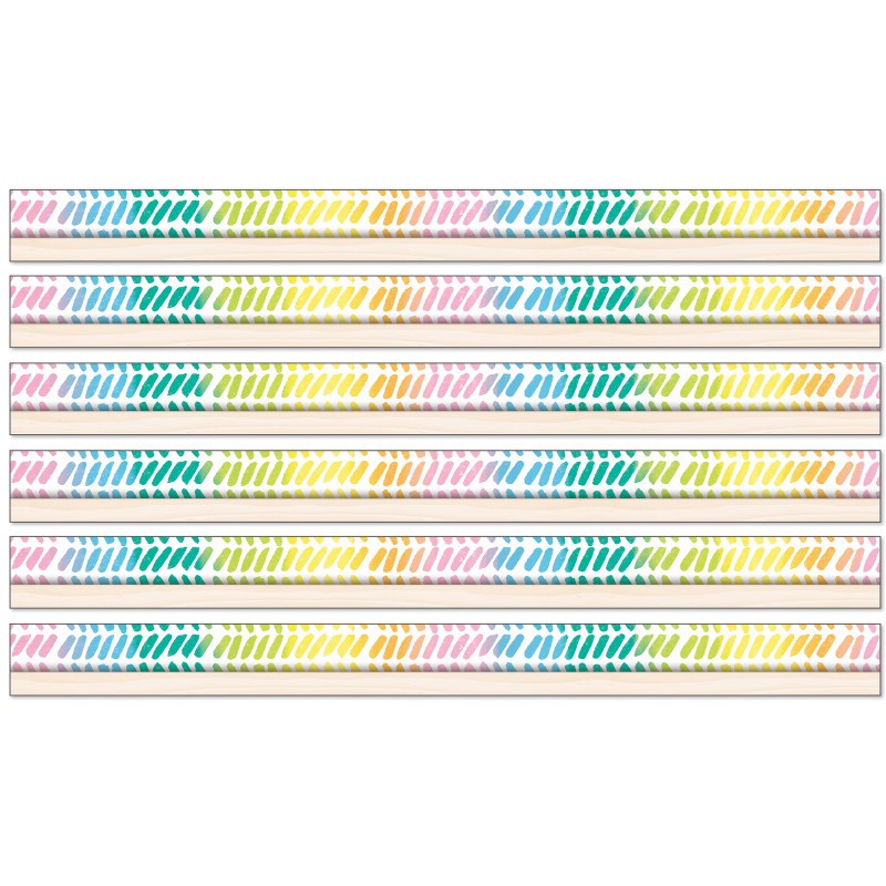 Add a rainbow of color to your learning space using Carson Dellosa Creatively Inspired Watercolor Chevron Rainbow Bulletin Board Borders—perfect for bulletin board, white board, cork board, and other rainbow décor. Each neutral classroom borders set includes 12 strips of straight bulletin border with a rainbow chevron design and light wood motif to add to any muted colors classroom theme or boho neutral classroom décor. Boho rainbow classroom borders are a great addition to year-round party, black board, locker, and desk décor, office décor, as well as spring and summer bulletin board decorations. Each strip of bulletin board border measures 3' x 3" for a total of 36 feet per pack for door, cubby, chalkboard, and wall décor that compliments a muted color classroom theme and other boho rainbow classroom décor. Sold as 6 packs for a total of 72 strips (432 feet).
