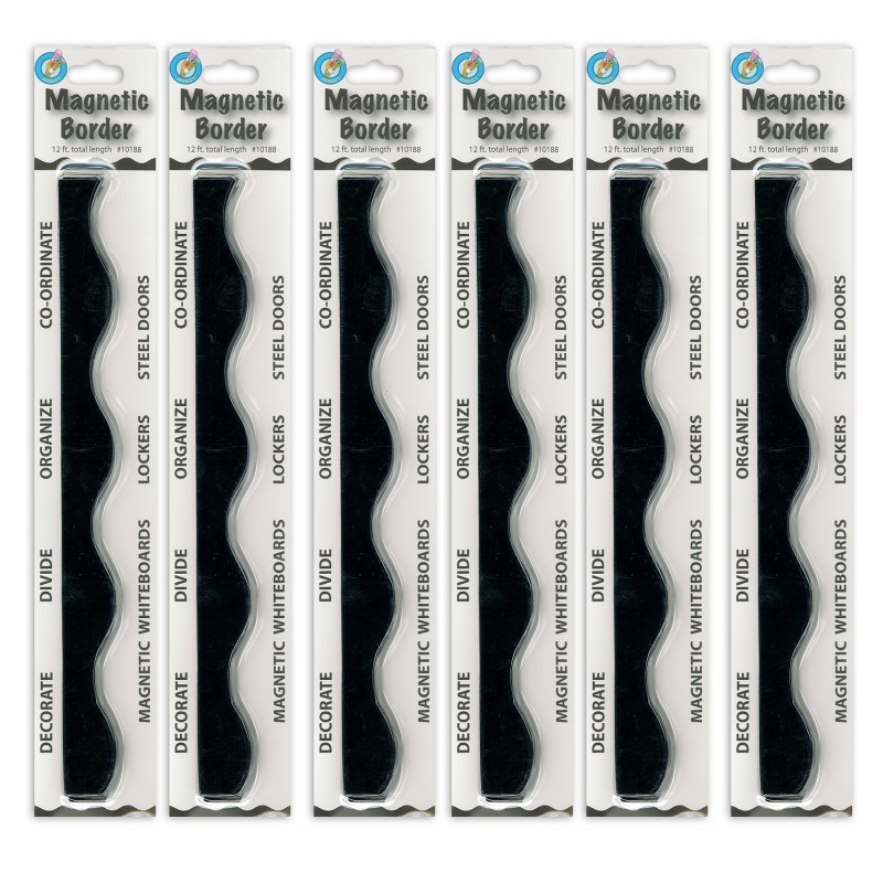 Great for decoration in the classroom or at home! Mix or match with coordinating decor! Use on magnetic whiteboards, steel lockers, refrigerators, and more. Wipe clean with damp cloth. Each piece measures 1" x 12". Each pack comes with 12 pieces, totaling 12 feet. Sold as 6 packs for a total of 72 pieces (72 feet).